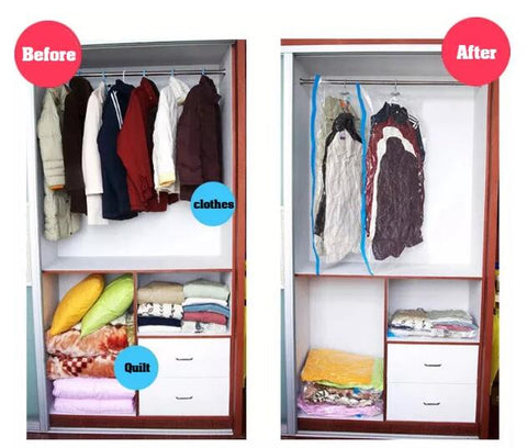 Îți dorești să îți reorganizezi garderoba, dar teroarea spatiului îngrămădit îți dă bătăi de cap? Acum poți economisi cu adevărat spațiu cu Sacii Vacuum Economisitori. Acești saci sunt soluția ideală pentru a depozita cu ușurință pături, haine de iarnă și alte articole voluminoase. Folosind orice aspirator, sacii se comprimă simplu, lăsându-te cu de trei ori mai mult spațiu pentru a adăuga noi piese vestimentare.