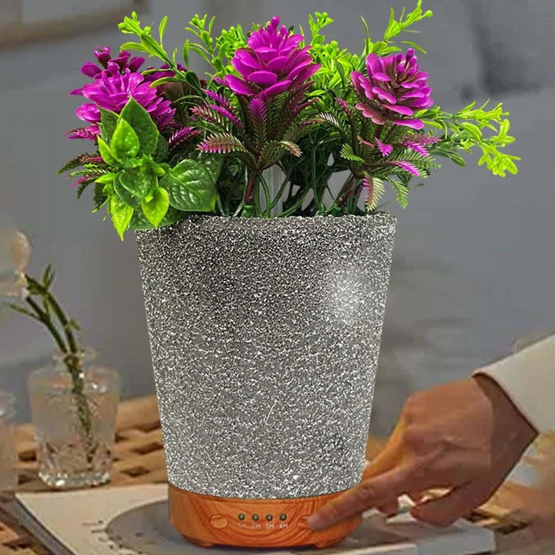 Umidificator aromaterapie in forma de ghiveci cu flori, 7 culori, programabil